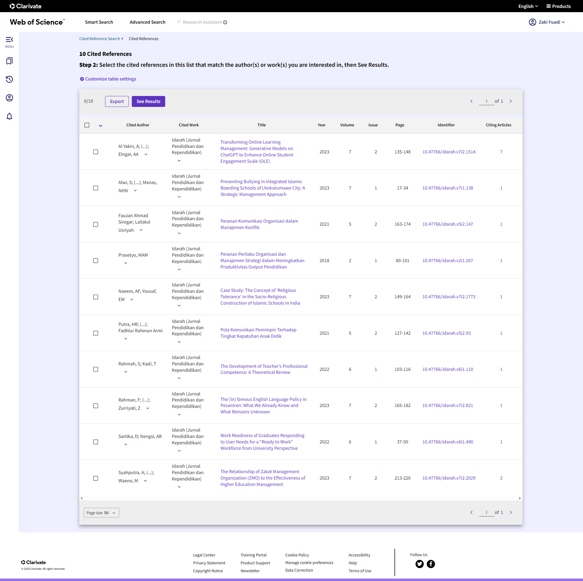 Idarah (Jurnal Pendidikan dan Kependidikan) (Cited Work) or Idarah (Jurnal Pendidik. dan Kependidikan) (Cited Work) has been cited 17 times from 10 articles in Web of Sciences. (update: Nov 30, 2025).